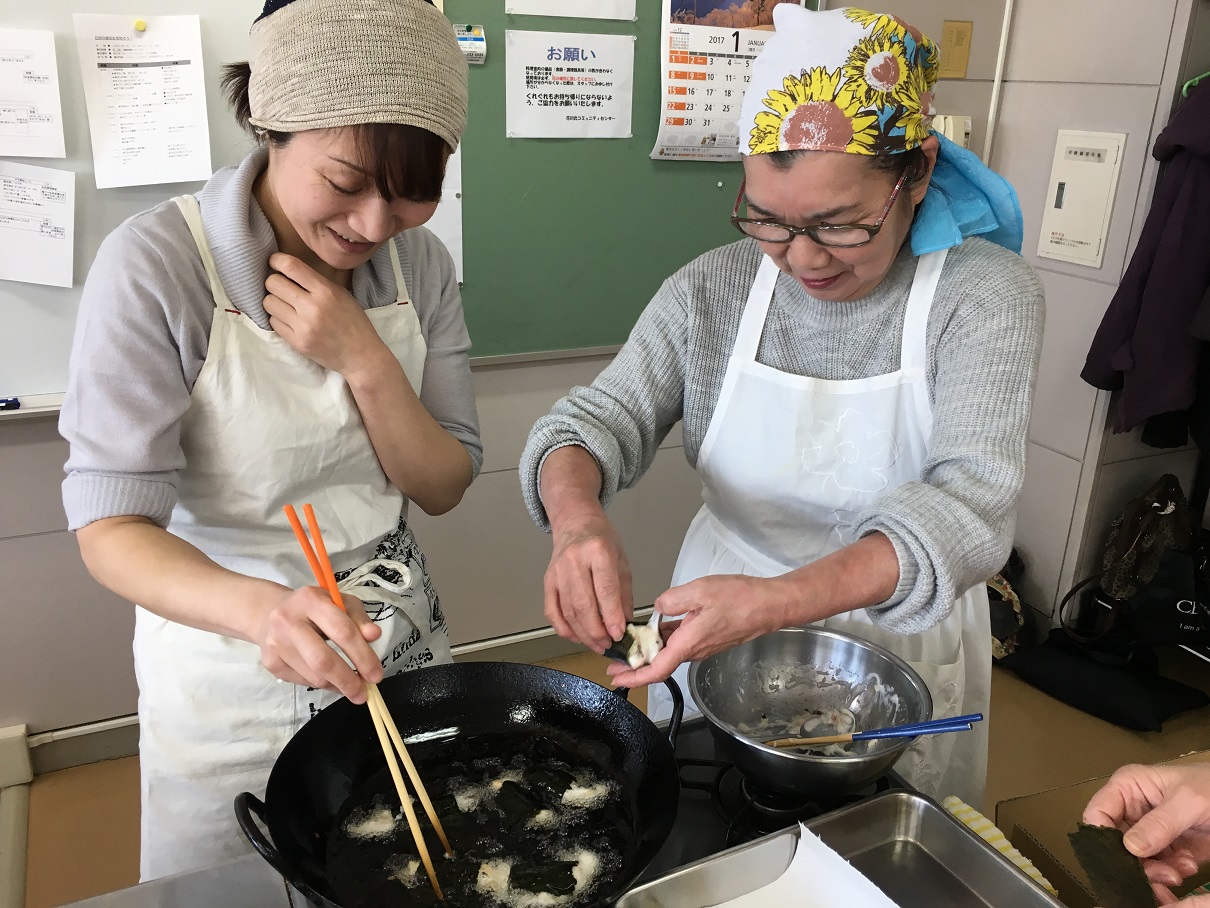 調理は、茹で落花生入りの長いもの磯辺揚げを作りました。