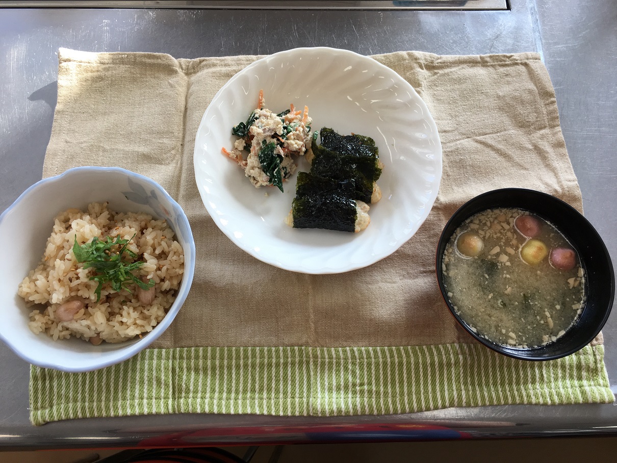 その他に試食として、応援隊メンバーで作った落花生ご飯、落花生入り白和え、落花生のみそ汁も用意しました。