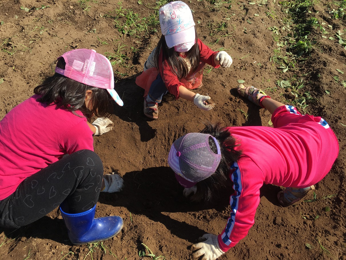 お子さんと一緒に収穫したり、こども同士で土いじりを始めたり…。