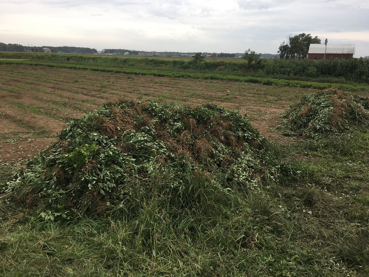 収穫の後は葉を落として行く人が多いので、畑の横には葉っぱの山がこんもりと積み上がります。