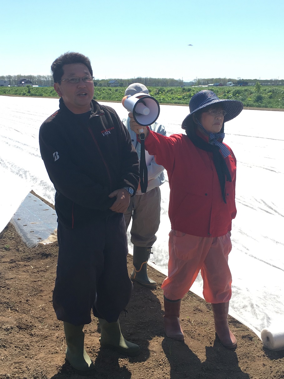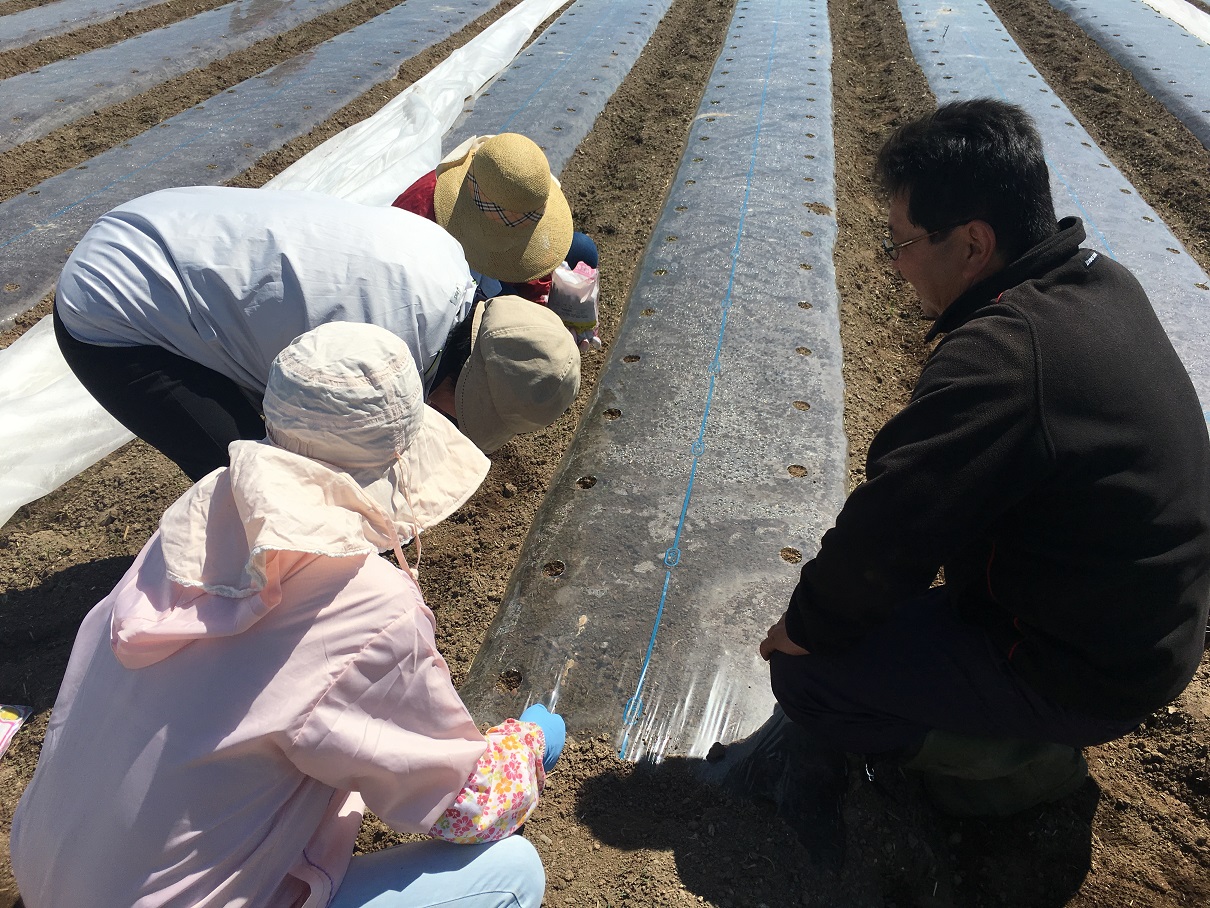 須藤会長の挨拶や、臼澤さんの地温ミニ講座が終わったら、今日の作業の仕方を説明し(今年はデモンストレーション付き!)いざ作業開始です。