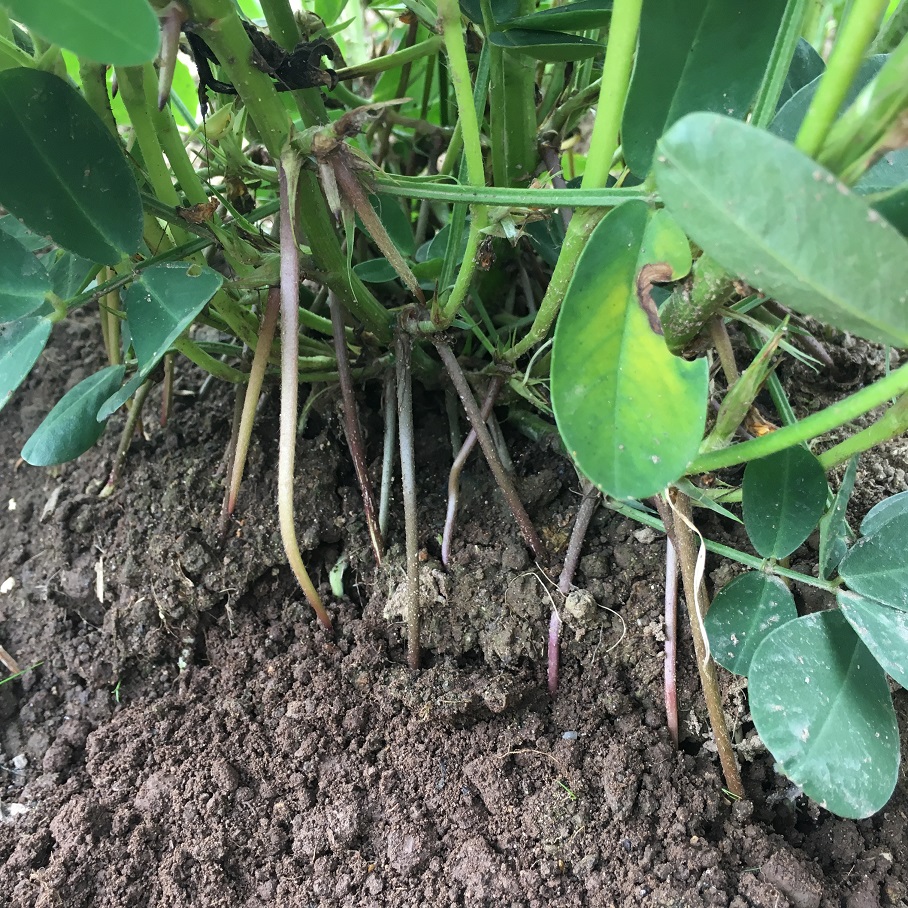 今年の異常気象のせいで心配が続く落花生の生育状況。