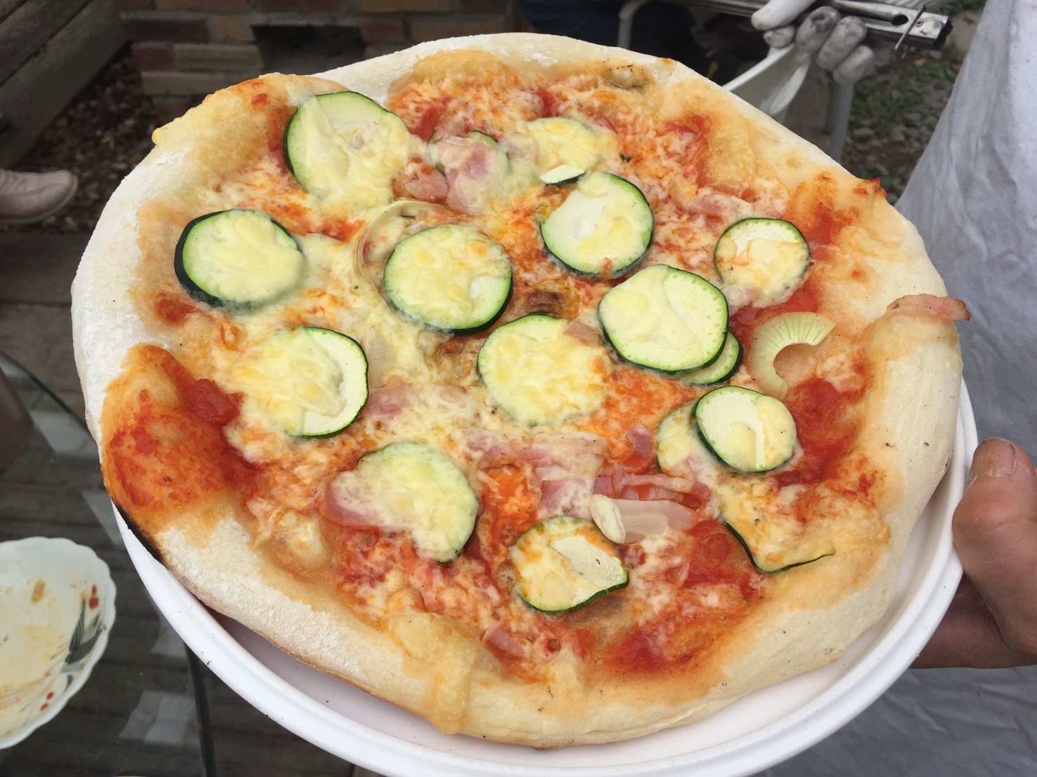夏野菜たっぷりのピザ、やはり焼きたては格別です