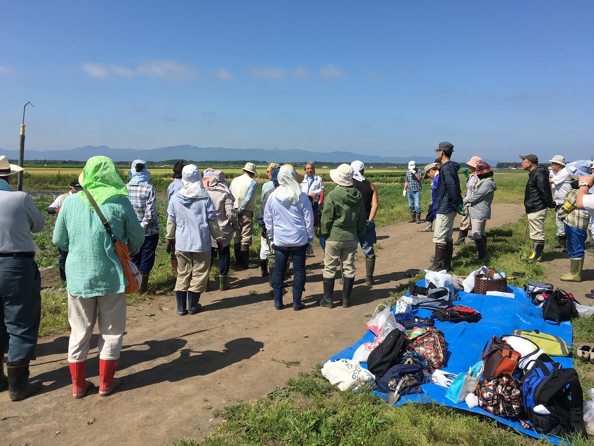 中にはお手製の除草具(ネジリ鎌をパイプに差し込んだもの)を持参している人も。