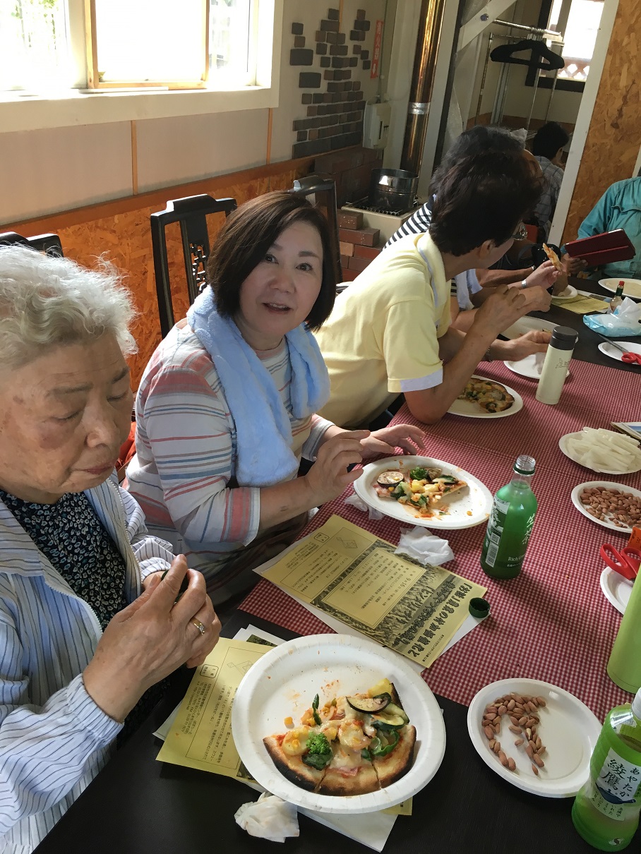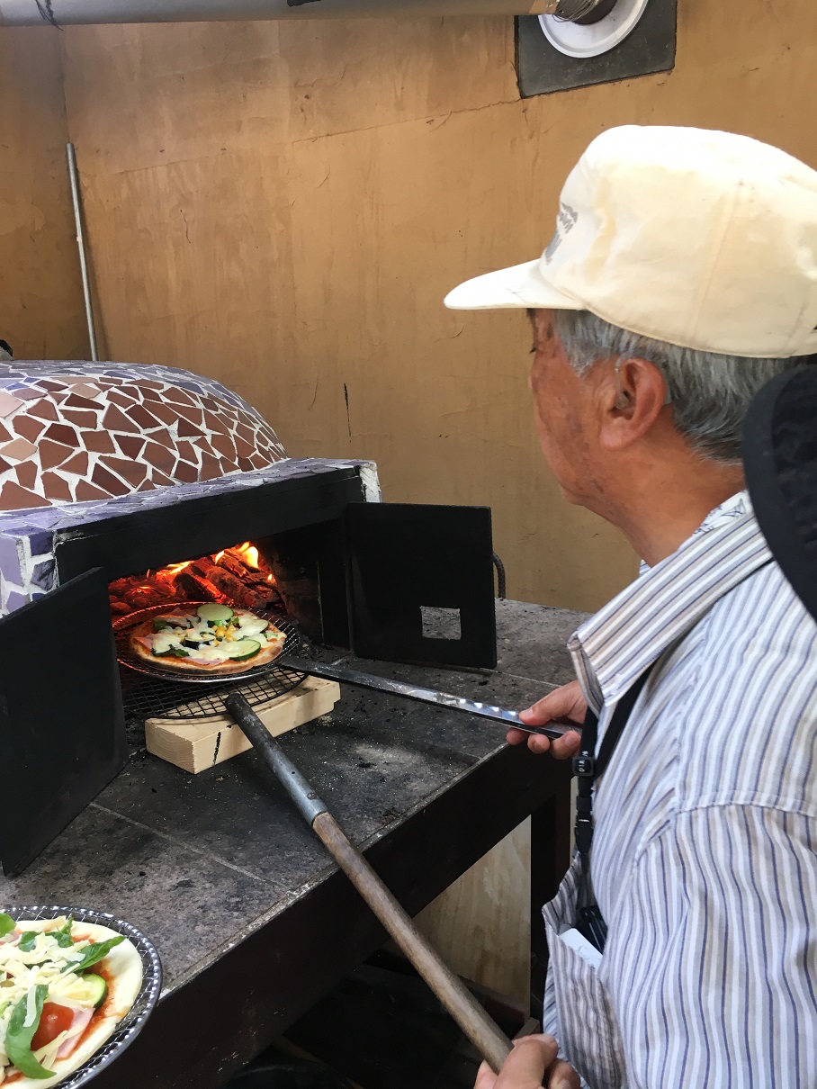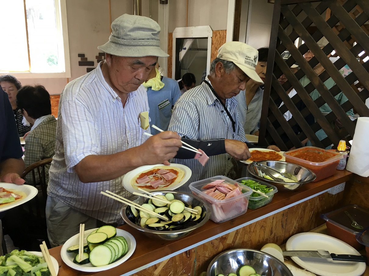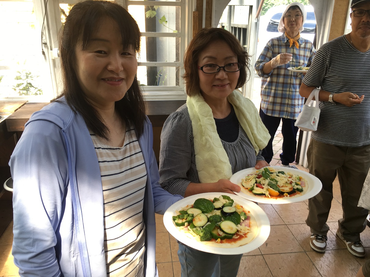 藤澤製菓さん(当別町弥生)に石狩産小麦粉で作っていただいた生地に、石狩産トマト(ミニトマト・トマトピューレ・グリーンチャウ)で作ったピザソース、各自持参していただいた野菜をトッピングします。