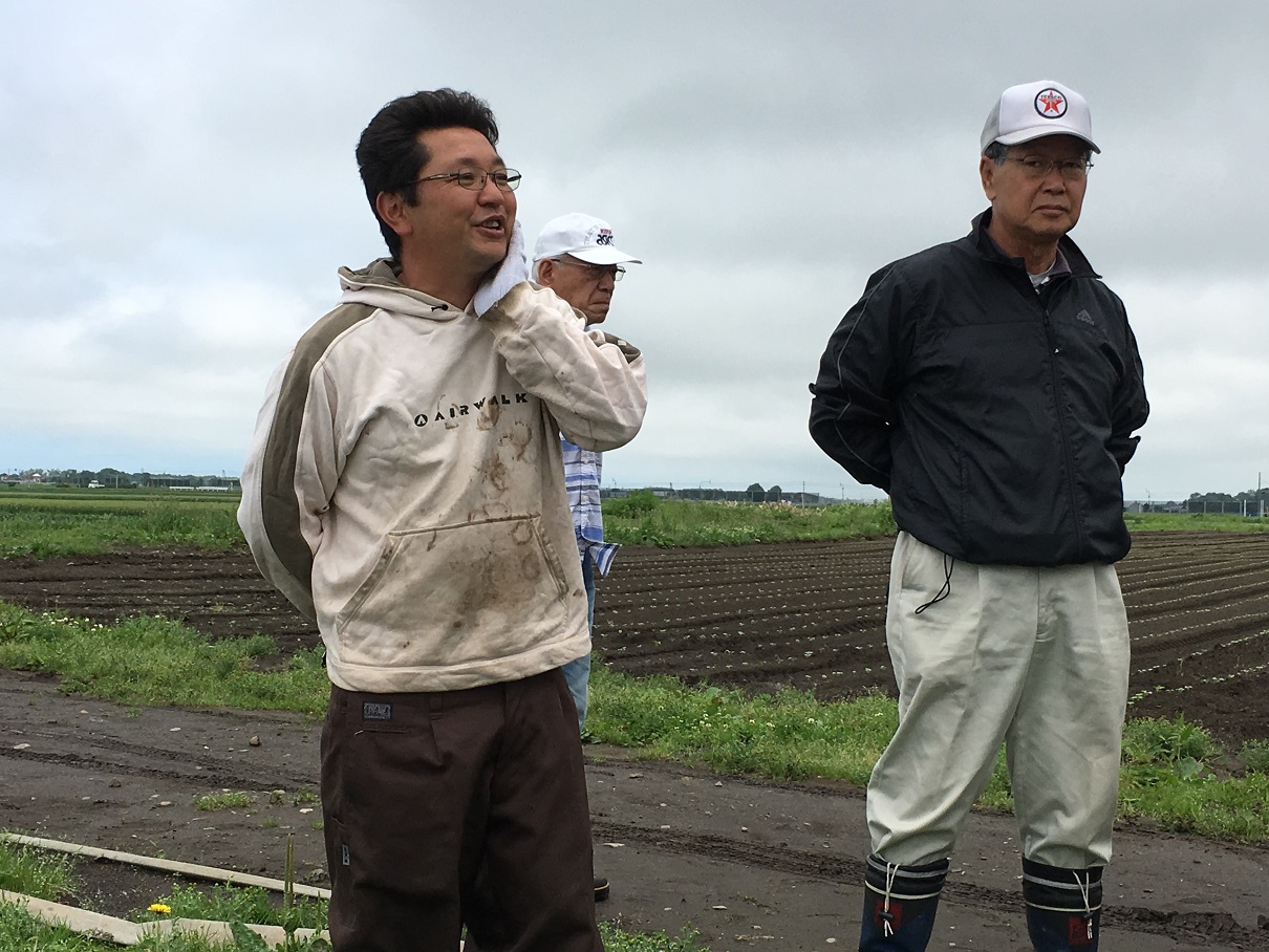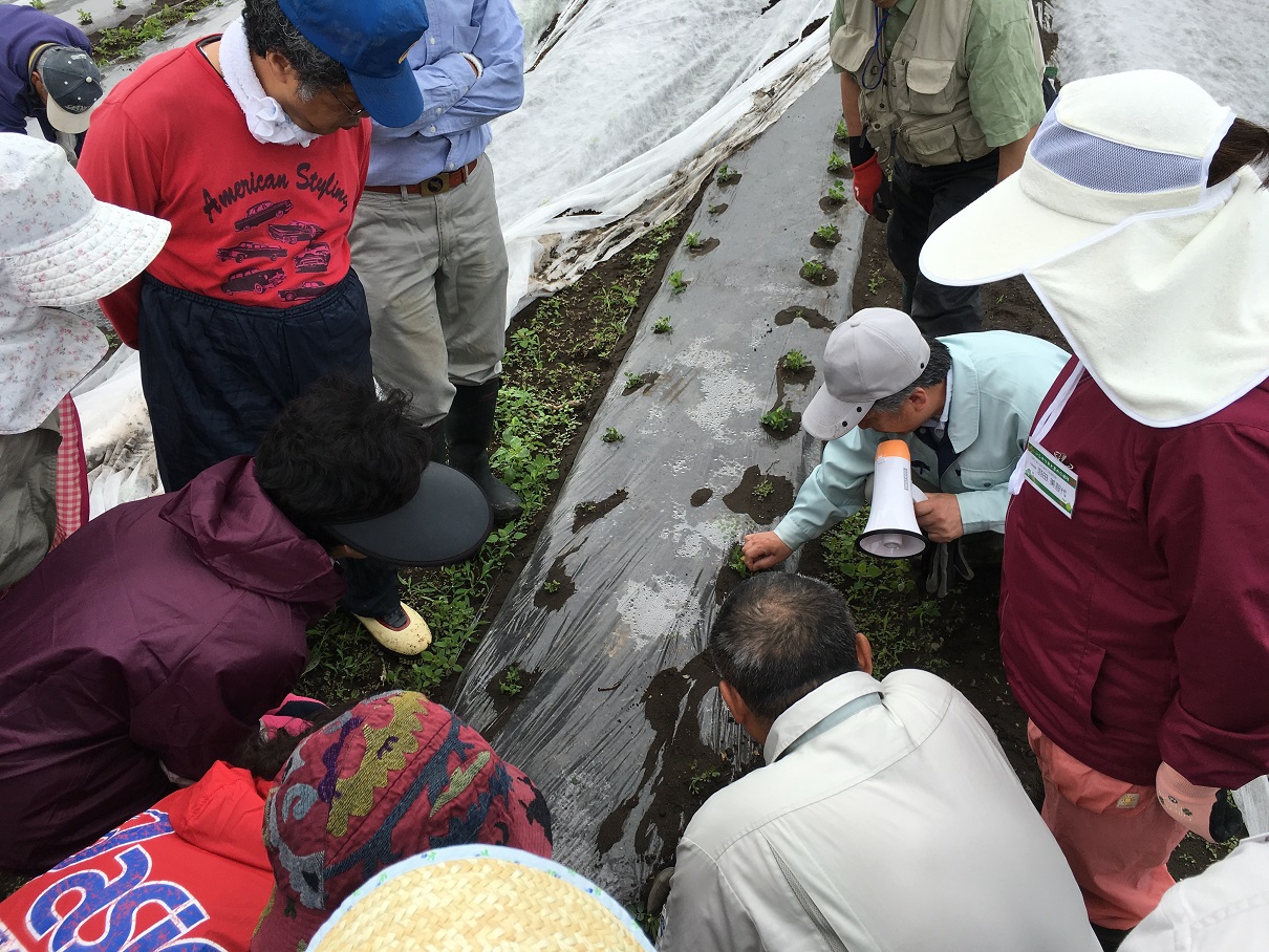 まずは石狩市農業総合支援センターの臼澤さんから草取りの説明を受けます。