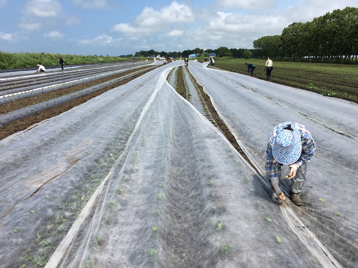 最後にもう一度不織布をかけ、本日の作業終了です。
